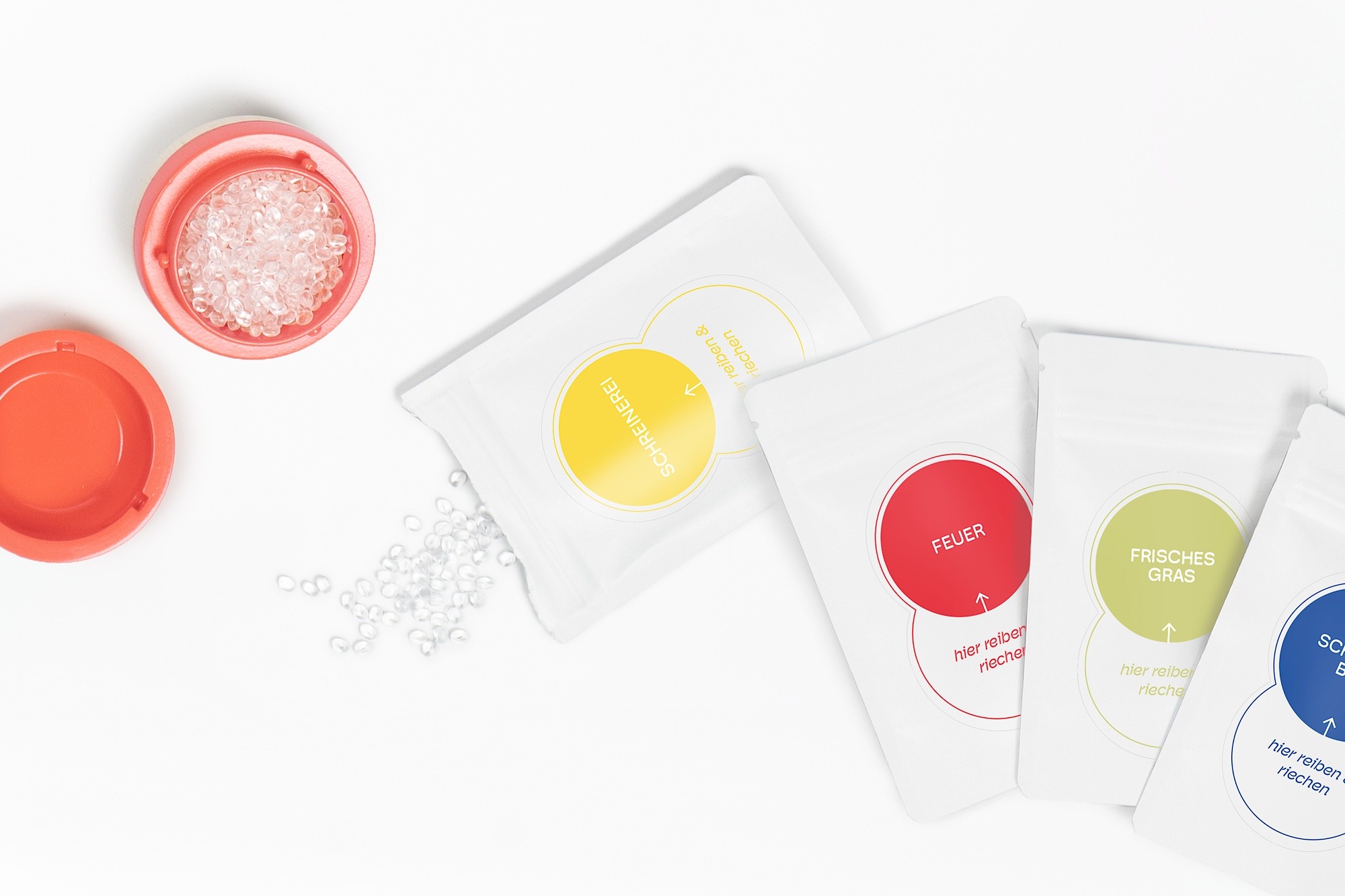 In den Workshops trug ich Gerüche mit Duftöl auf ein Stück Watte auf. Das funktionierte aber nur bedingt, weil sie zu wenig konzentriert waren. Sie vermischten sich mit anderen Gerüchen. Sie müssen stark sein und punktuell auftreten, um zu wirken. Diese Erkenntnis hat sich dann später auf das Design der Objekte ausgewirkt.