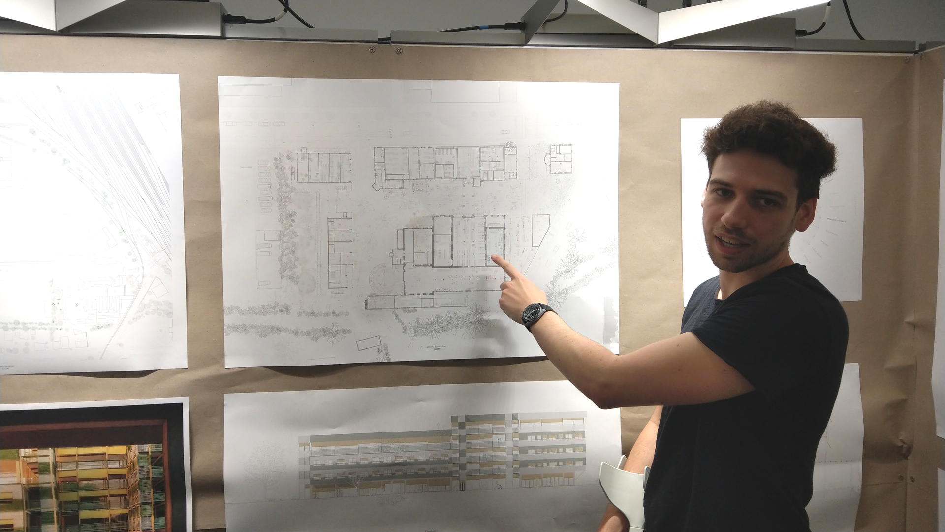 Doch von vorne: In den letzten Monaten haben Architekturstudierende des ETH-Studios Maria Conen das Entwicklungspotenzial verschiedener Areale in Biel und Nidau ausgelotet. Unter dem Motto ‹Cycles&Spaces, Spaces&Cycles› hatten sie den Auftrag, Vorschläge für zirkuläre Prozesse mit einem speziellen Fokus auf soziale Aspekte und Wasserkreisläufe zu erarbeiten. Eine Aufgabenstellung, wie gemacht für den Schlachthof. Das fanden auch Dara Rüfenacht, Joël Liechti und Fabian Müller, die das 8'000 Quadratmeter grosse Areal für ihre Diplomarbeiten wählten. Die drei Architekturstudierenden aus dem Kanton Bern haben die mögliche Zukunft des Schlachthofareals jenseits von reinem Investorendenken entwickelt. Anlässlich meines Ausstellungsbesuchs auf dem Hönggerberg gaben mir Joël und Fabian vertiefte Einblicke in ihr Vorgehen und ihre Erkenntnisse der letzten Monate.