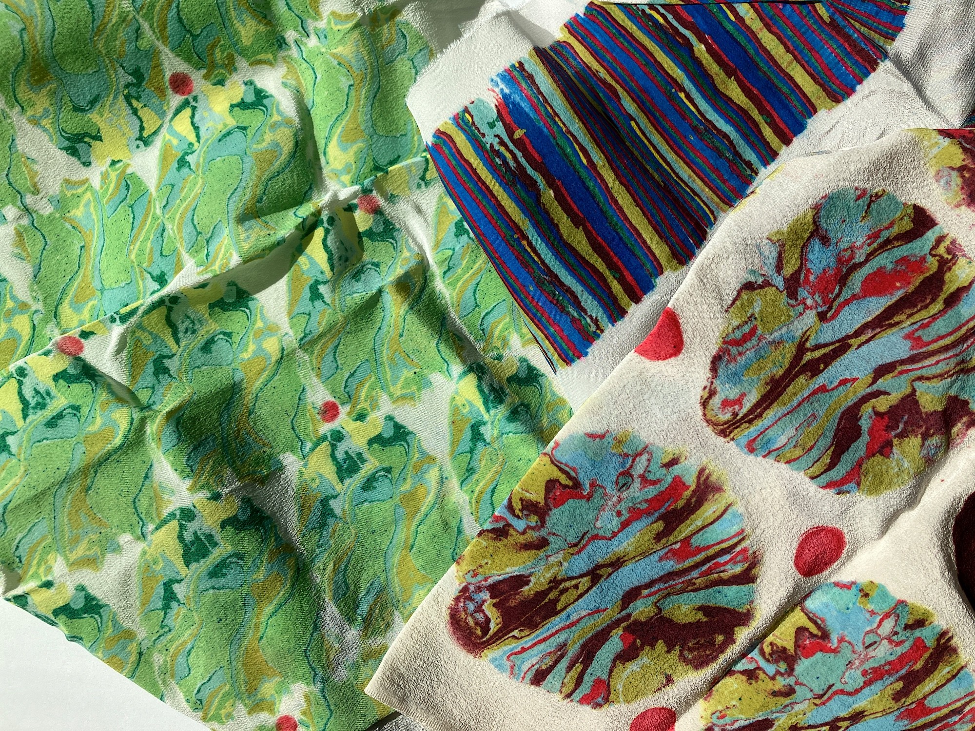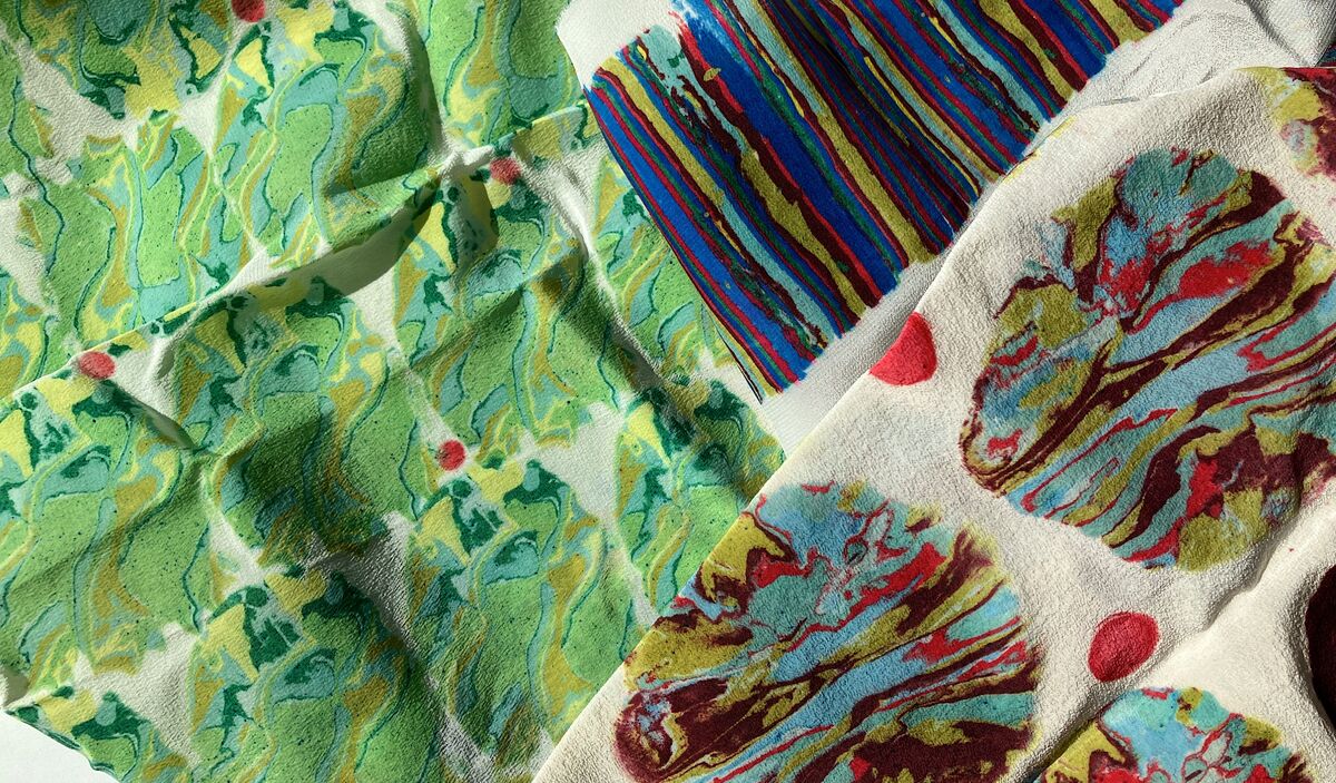 In meinem Projekt ging es darum, die Knetmasse für das sogenannte Orbis-Verfahren wieder zu entwickeln. Denn es gibt dazu keine zugänglichen Rezepturen mehr. Orbis ist ein Druckverfahren aus den 1920er Jahren. Dabei werden Knetmassen eingefärbt, von Hand zu Muster verknetet, um eine Walze gelegt und abgedruckt. Der Knet als Farbträger wird kontinuierlich abgetragen, sodass jeder Meter Stoff ein Unikat bleibt. Mit Orbis-Verfahren können unlimitiert viele Farben gedruckt werden, was bis zur Erfindung des Inkjet-Verfahrens kaum möglich war. In der Schweiz wurde das Orbis-Verfahren von zirka 1985 bis 1995 unter dem Namen Marvel von der Firma Jakob Schlaepfer in St. Gallen angewendet. Heute wird die Technik weltweit nur noch vom japanischen Unternehmen Kyoto Marble benutzt.