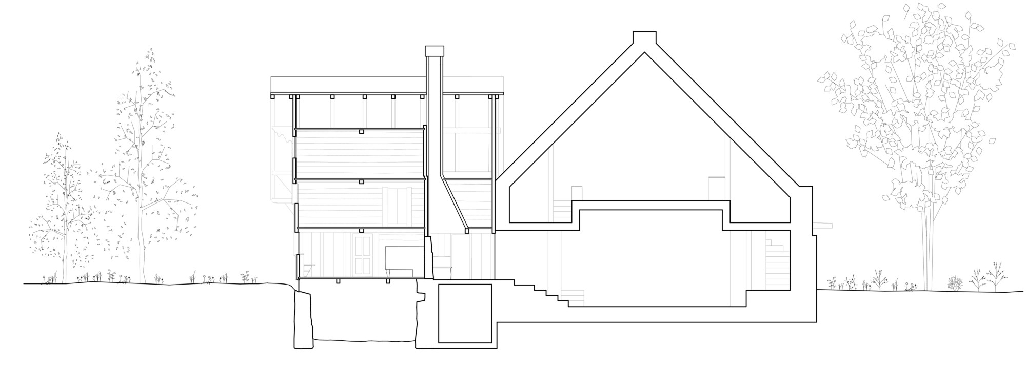 Um den Altbau in seiner ursprünglichen Erscheinung zu bewahren und dennoch eine zeitgemässe Nutzung zu ermöglichen, wird er durch einen Neubau ergänzt. Während der Altbau mit seiner Hauptfassade wieder nach Süden zur Strasse ausgerichtet ist, wurde der Neubau leicht abgedreht, um einen Ankunftsort zu schaffen und den Blick in den Garten zu öffnen. Über einen niedrigeren Zwischenraum sind die beiden Volumen miteinander verbunden, wodurch eine neue, eigenständige Figur entsteht.