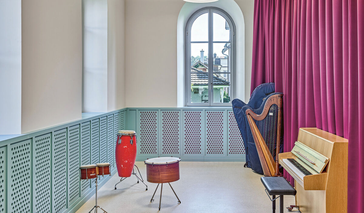 Züst Gübeli Gambetti haben eine 1900 erstellte Kirche in Adliswil in eine Musikschule umgebaut. Eine breite Farbpalette verleiht den Unterrichtszimmern einen individuellen Charakter.