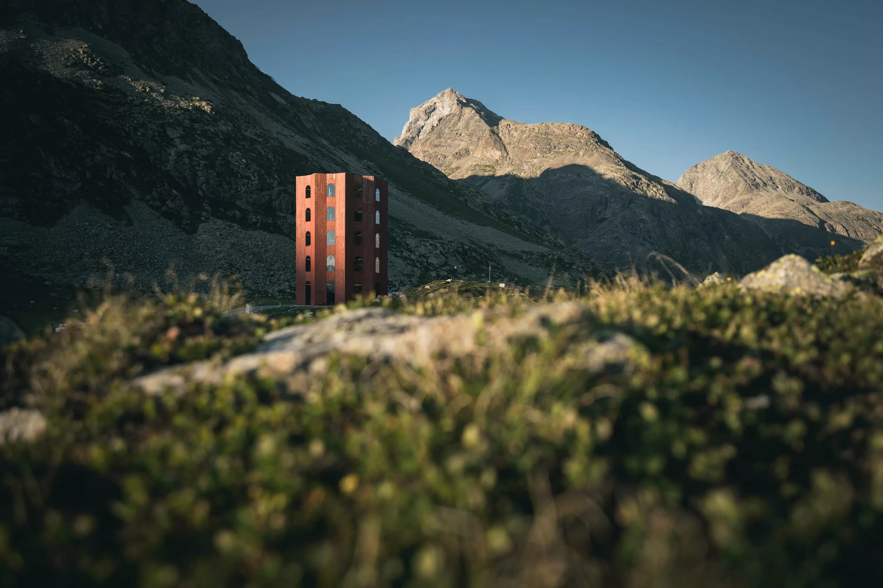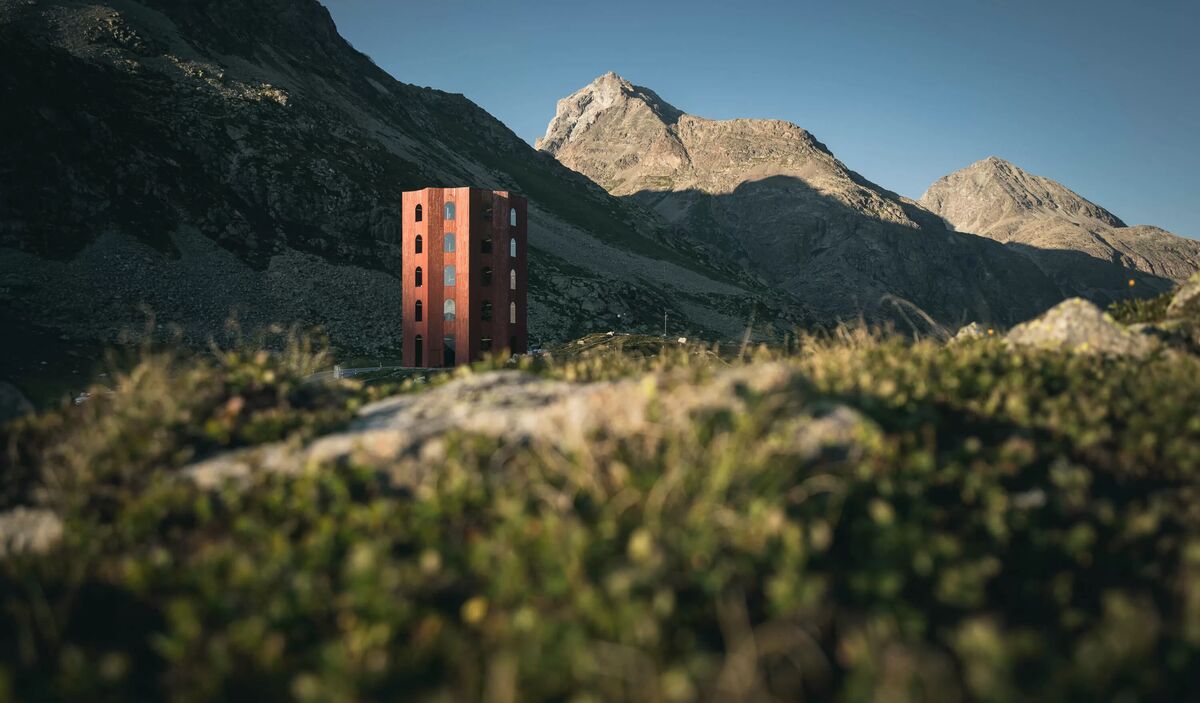Die Tage des roten Theaterturms des Origen Festivals auf der Julier-Passhöhe sind gezählt. Ein Nachruf von Köbi Gantenbein.