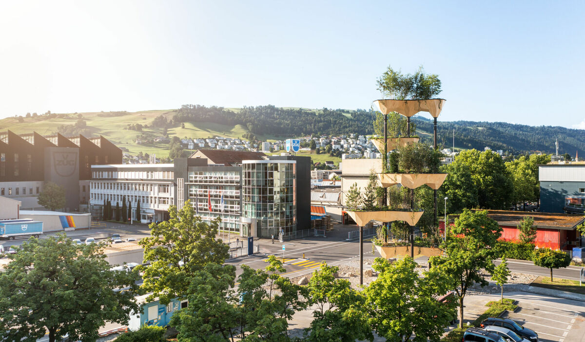 Auf dem Techcluster-Areal in Zug steht seit Anfang Juli eine 25 Meter hohe Baumskulptur. Zusammengebaut haben sie vier Industrieroboter in der digitalen Fabrikationshalle der ETH Zürich.