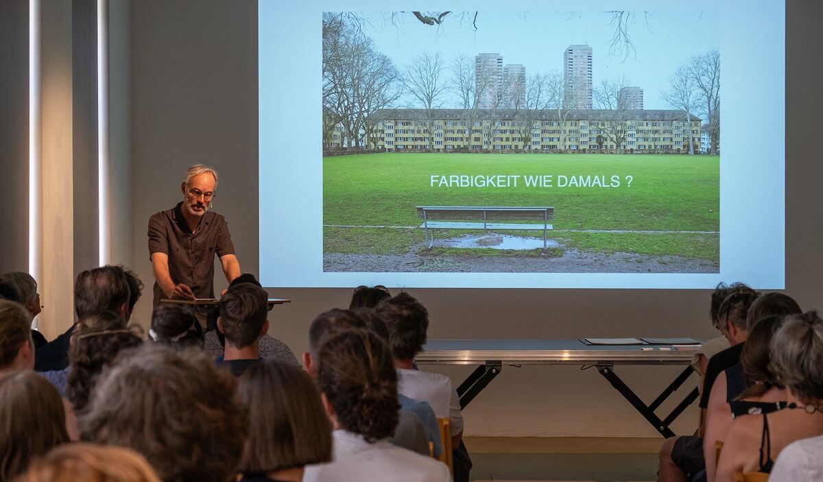 Es geht um die Sanierung der städtischen Wohnsiedlung Bullingerhof, 1931 von den Architekten Karl Kündig und Heinrich Oetiker gebaut, die grösste Blockrand-Überbauung in der Stadt Zürich. Sie befindet sich im Inventar der kunst- und kulturhistorischen Schutzobjekte und im Inventar der schützenswerten Gärten und Anlagen von kommunaler Bedeutung. Diesen Frühling wurde die Gesamtinstandsetzung durch das Architekturbüro Pfister Schiess Tropeano & Partner abgeschlossen. Der Brownbag-Lunch widmet sich den Farben von damals und heute. Architekt Hauke Möller, Farbgestalterin Olivia Fontana und Alexander Baumann, Verkaufsleiter beim Farbenhersteller Karl Bubenhofer AG geben Einblicke in den Sanierungsprozess.