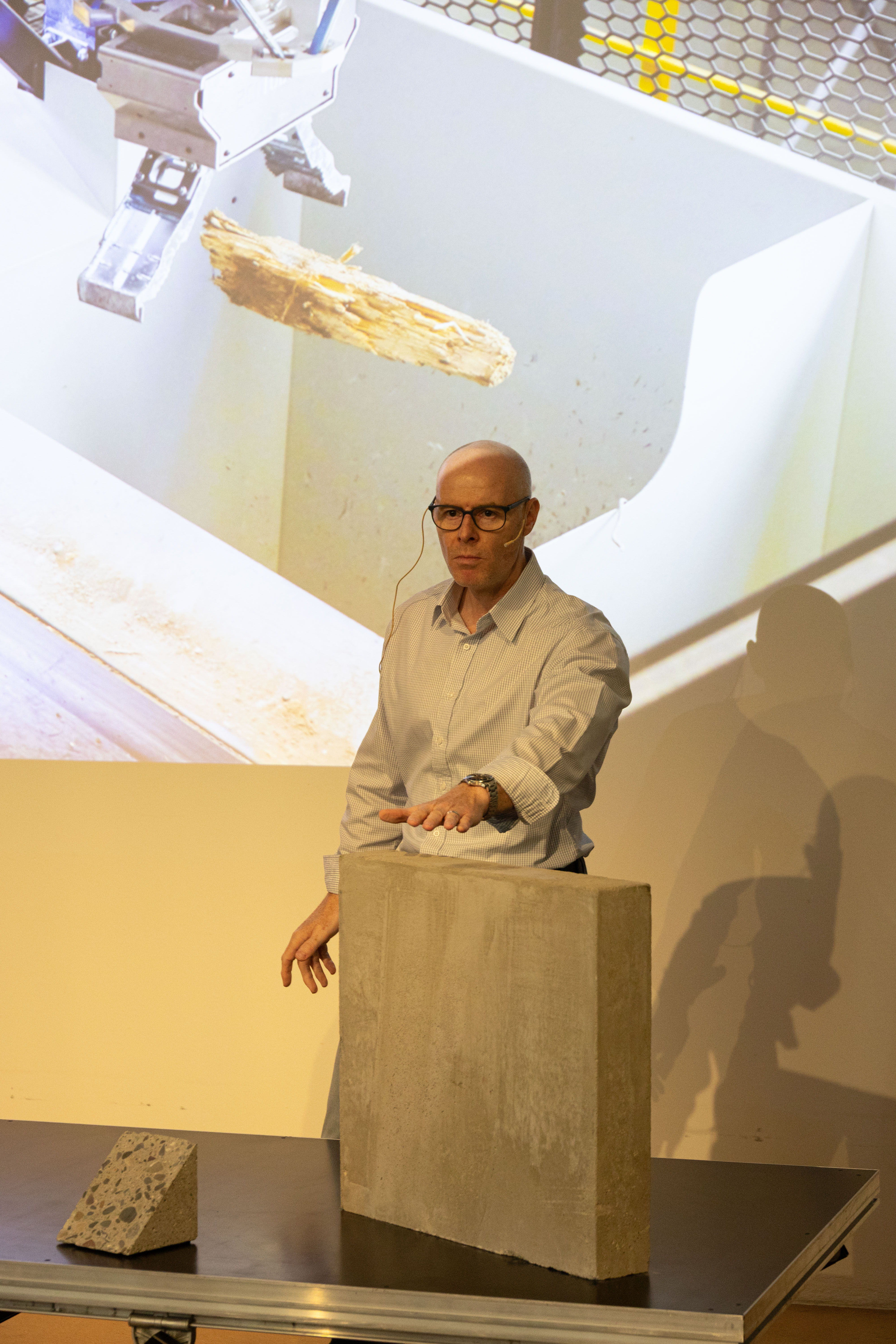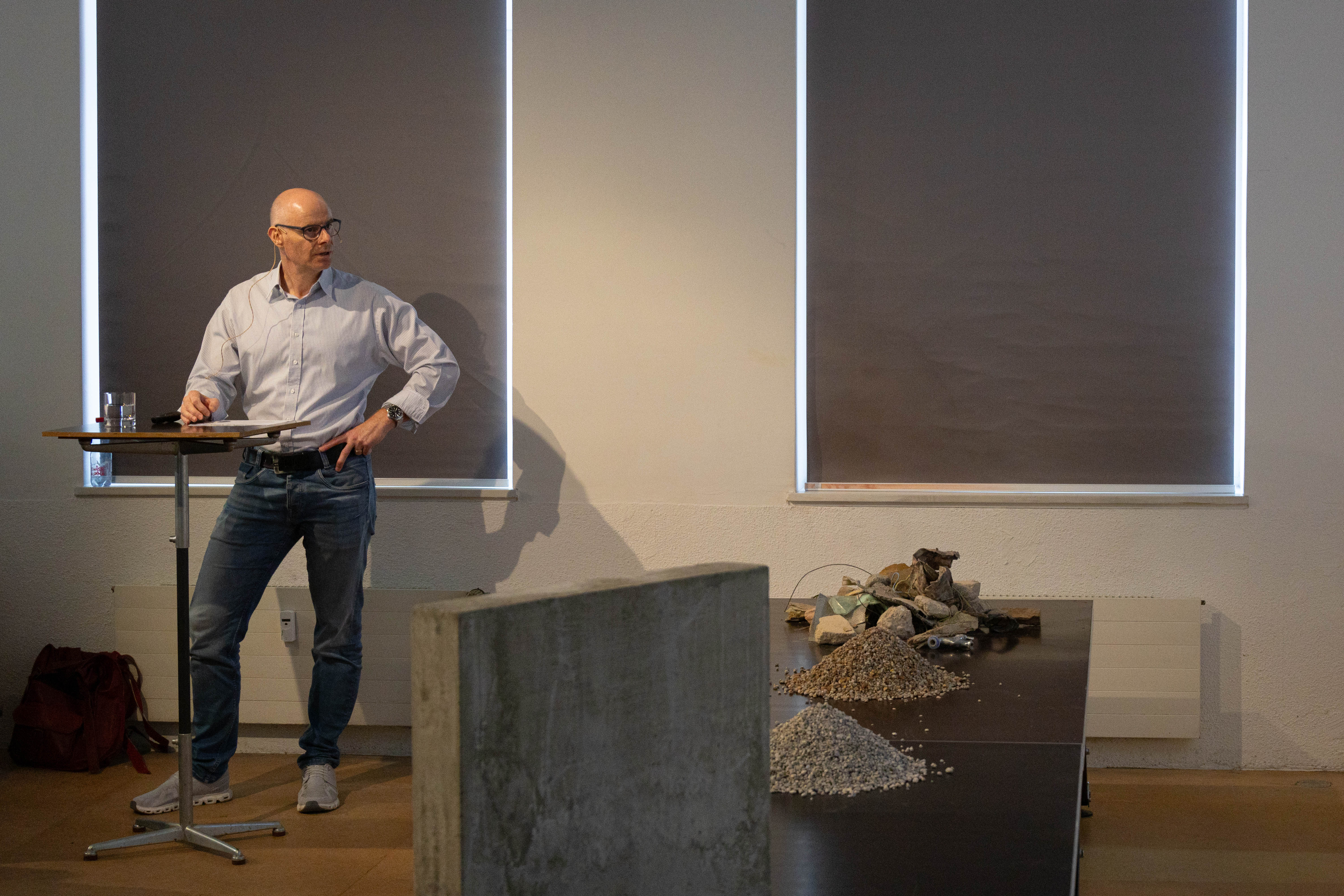 Ist echte Kreislaufwirtschaft in der Betonherstellung möglich? Zirkulit hat sich auf die Wette eingelassen. Dank einer vollautomatischen Anlage ist es möglich, Abbruchmaterial sortenrein aufzubereiten. Warum das wichtig ist, erklärte Franz Schnyder, Leiter Hightech-Beton bei Eberhard am allerletzten Brownbag-Lunch am alten Standort der Baumuster-Centrale. Zirkulit zum Anfassen gab es auch: Auf einem Tisch lagen Beispiele sortierten und unsortierten Baumaterials. So konnten sich die Besucherinnen und Besucher mit eigenen Händen von den unterschiedlichen Stoffarten und -qualitäten auseinandersetzen.