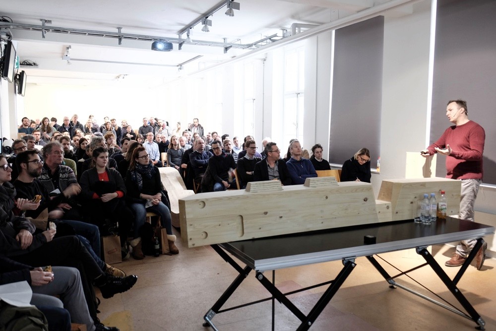 Fabian Scheurer, der zweite Vortragende, unterstreicht das. Mit seiner Firma Design-to-Production begleitet er viele Projekte von Blumer Lehmann. Er optimiert die von den Architekten kommenden Modelle, rationalisiert die Geometrien und reduziert die Anzahl der anfallenden Bauteil- und Verbindungstypen. Der «pingelige Controller» sei er auch noch. Für Cambridge hiess das: 2746 Freiformbauteile auf 145 verschiedene Typen zu reduzieren. Auf die digital gesteuerten Fräsen des Erlenhofs musste man sogar nur 23 unterschiedliche Rohlinge spannen. Das Prinzip lautet: viel Vorfertigung und einfachste Montage für eine schnelle Baustelle. Die Schlussfolgerung beider Vortragenden: Ein Mock-up sei ein eigenständiges Bauprojekt, und das koste. Baue man es jedoch früh genug, bringe es allen am Bau Beteiligten etwas sehr Wertvolles: Sicherheit.
