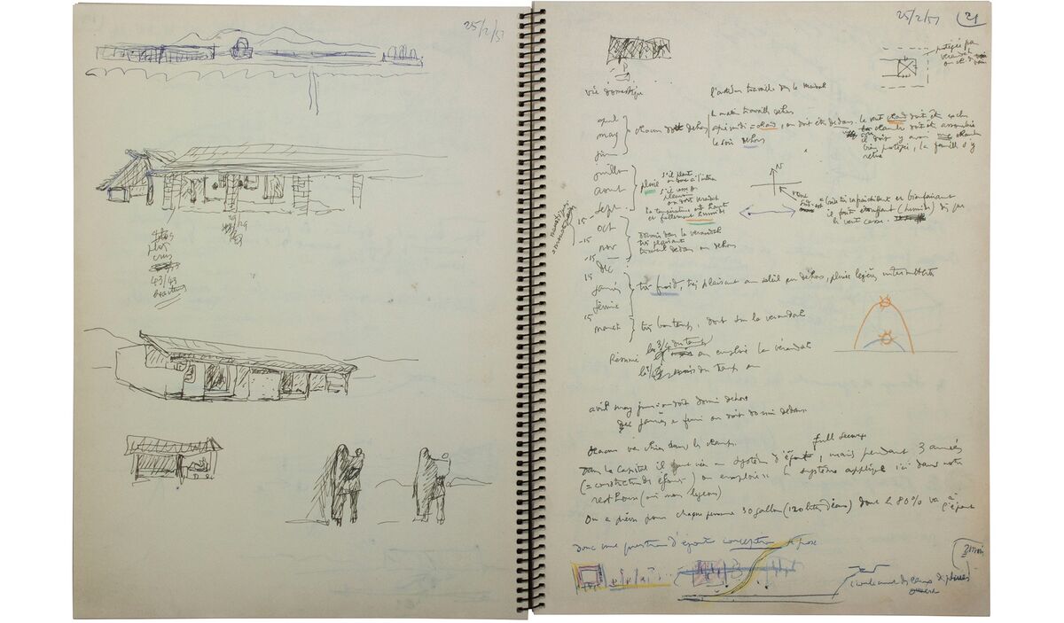 Zeitreise in die Vergangenheit: Das verblüffende Faksimile von Le Corbusiers geringeltem Notizbuch mit Notizen und Skizzen von seiner ersten Indienreise.