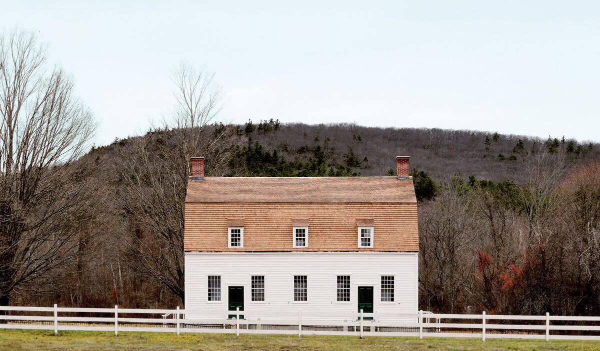 Die strikte Geschlechtertrennung der Shaker spiegelt sich in der Architektur. Das Meetinghouse in Hancock (Massachusetts) von 1793 ist symmetrisch geplant. Bild: Vitra Design Museum/Ales Lesage