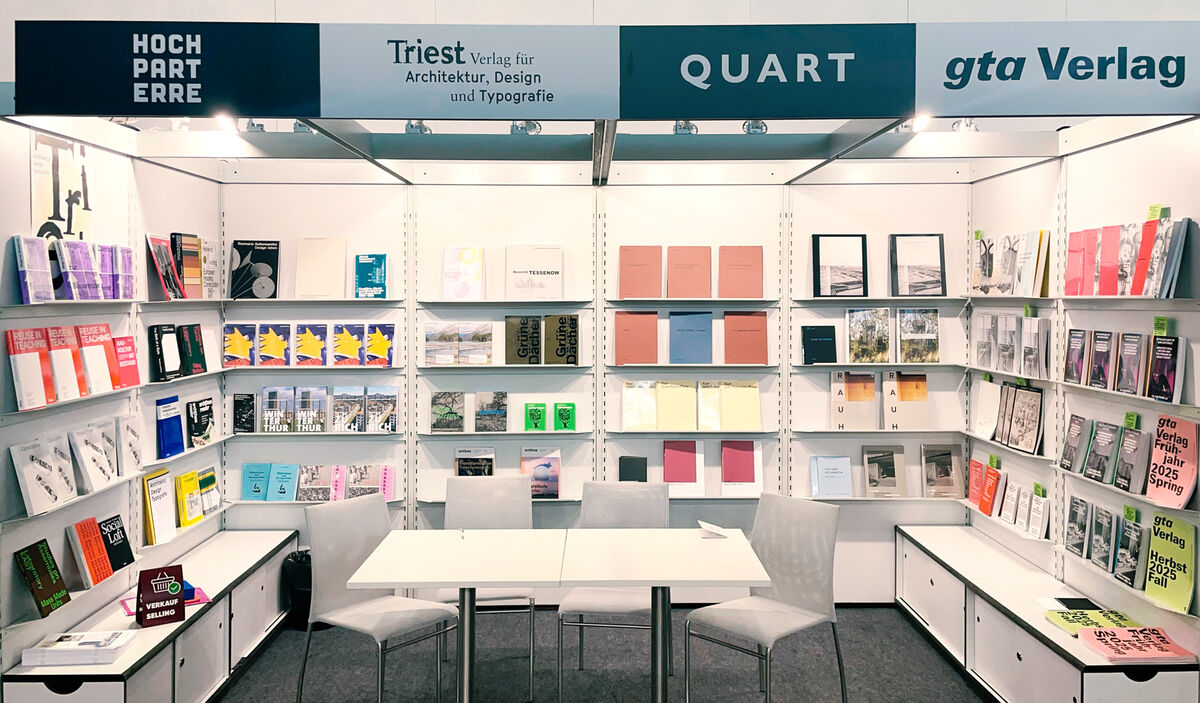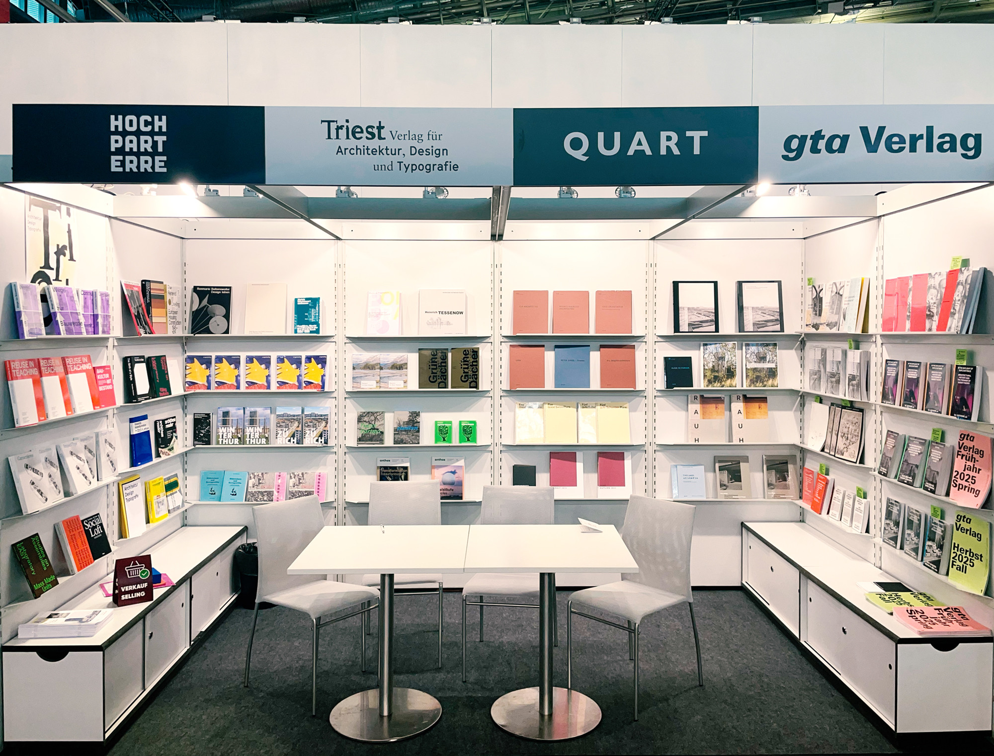 Heute hat die Frankfurter Buchmesse begonnen, die grosse und traditionsreiche Fachmesse für «Publishing-Expert*innen und Vertreter*innen der Kreativindustrie, Autor*innen und Stars, Journalist*innen und Kulturbegeisterte aus aller Welt». Ausgabe Nr. 77 findet vom 15. bis zum 19. Oktober in den Frankfurter Messehallen statt. Auch viele Architekturbuchverlage sind präsent und bilden in der Halle 3.1 einen kleinen, aber feinen Cluster. Die Edition Hochparterre teilt sich den Stand mit den befreundeten Verlagen Triest, Quart und gta Verlag. Wir freuen uns über Besuch am Stand H146 in der Halle 3.1!