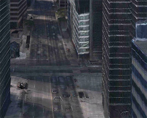 Verzerrte Gebäude, menschenleere Strassen, Autos als plattgedrückte Schatten auf den Strassen oder sich aufbäumende Swimmingpools inmitten eines amerikanischen Häusermeers. Seit gestern zeigt Regula Bochsler bizarre Bilder und Projektionen im Architekturforum Zürich. Für die Ausstellung ‹The Rendering Eye› baute sie aber keine Scheinwelten auf, das übernahm der Kartenservice Apple Maps. Dieser beruht auf Militärtechnologie für zielsuchende Raketen und übersetzt Unmengen an Fotomaterial seit September 2012 in dreidimensionale Stadtansichten. Während es für deren Fehlerhaftigkeit Kritik hagelte, fand Bochsler gerade diese faszinierend. Auf unzähligen «Flugreisen» erkundete sie das urbane Amerika und europäische Städte. Mit Screenshots «fotografierte» sie die besonderen Momente, die sie als «post-apokalyptisch» und «malerisch» zugleich betrachtet.