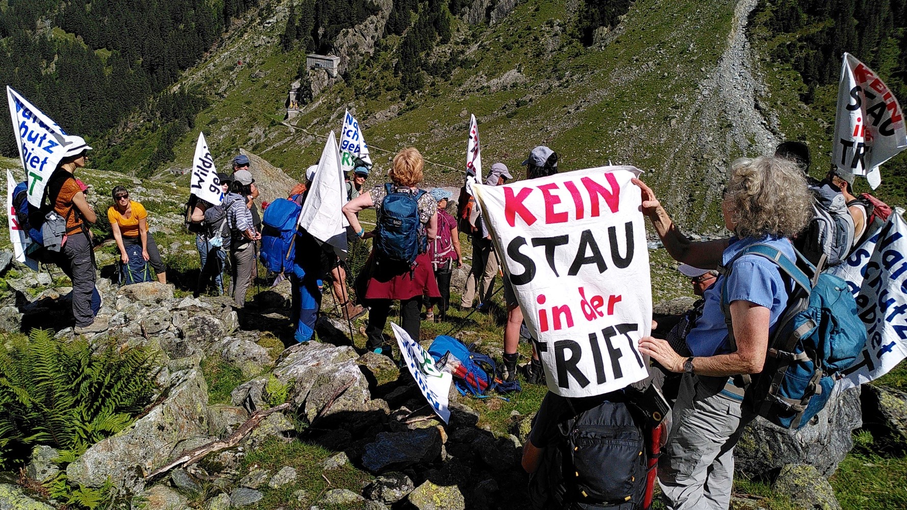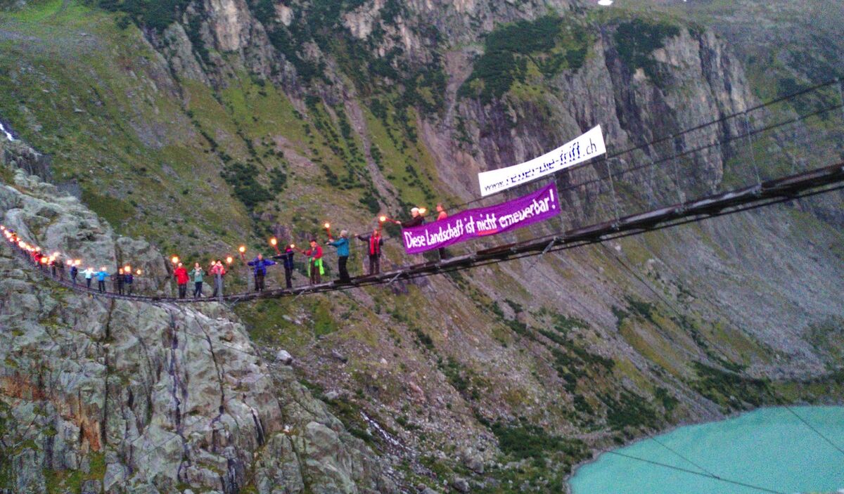 Gut fünfzig Landschaftsschützerinnen und Alpenfreunde demonstrierten am Wochenende hoch oben im Haslital im Berner Oberland gegen die Pläne der Kraftwerke Oberhasli (KWO), im Triftgebiet einen neuen grossen Stausee zu bauen. Der Rückzug des Gletschers innert weniger Jahre hat eine Seen-Landschaft freigelegt, welche geschützt werden müsse, so die Botschaft. In seinem Manifest und in einem Energiegutachten zeigt das Triftkomitee eine ökonomische, umweltverträgliche Alternative der Energieversorgung und Energiespeicherung. Neue Wasserkraftprojekte sind nicht mehr konkurrenzfähig gegenüber der weit günstigeren Fotovoltaik. Diese kann im bebauten Gebiet dezentral vor Ort überall aufgebaut werden. Geeignete Flächen gibt es genug. Neue Technologien zur Speicherung der Sommerspitzen für den Winter wie neue Batterietypen und ‹Power to Gas› sind in der Entwicklung bereits weit fortgeschritten. Mit der geplanten Investition für einen neuen Stausee in der Trift liessen sich mit Fotovoltaik rund vier Mal so viel Strom erzeugen, davon einen Drittel im Winter. Die Botschaft ist klar. Dominik Siegrist vom Triftkomitee meinte anlässlich des Fackelumzugs: «Für die umweltverträgliche Gestaltung unsere Energiezukunft brauchen wir keine neuen Stauseen. Für den Atomausstieg und den Klimaschutz sollten wir auf zukunftsweisende Technik setzen. Diese ist weitgehend bereit, sodass die Politik nur die Weichen entsprechend zu stellen braucht.»