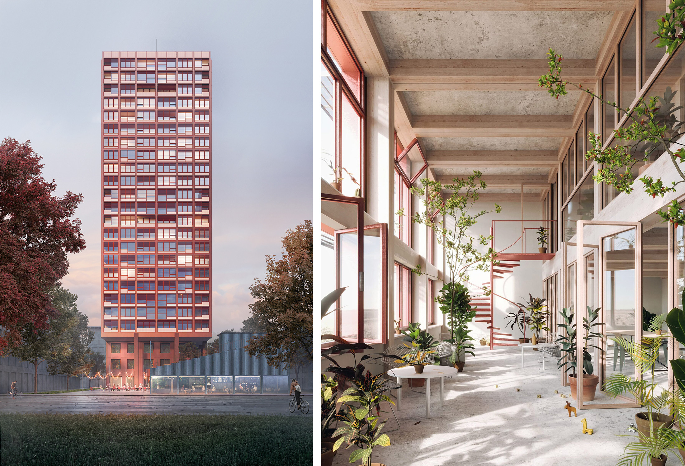 In Regensdorf ist Roger Boltshausers Holzhochhaus im Bau. Visualisierungen: Studio Blomen