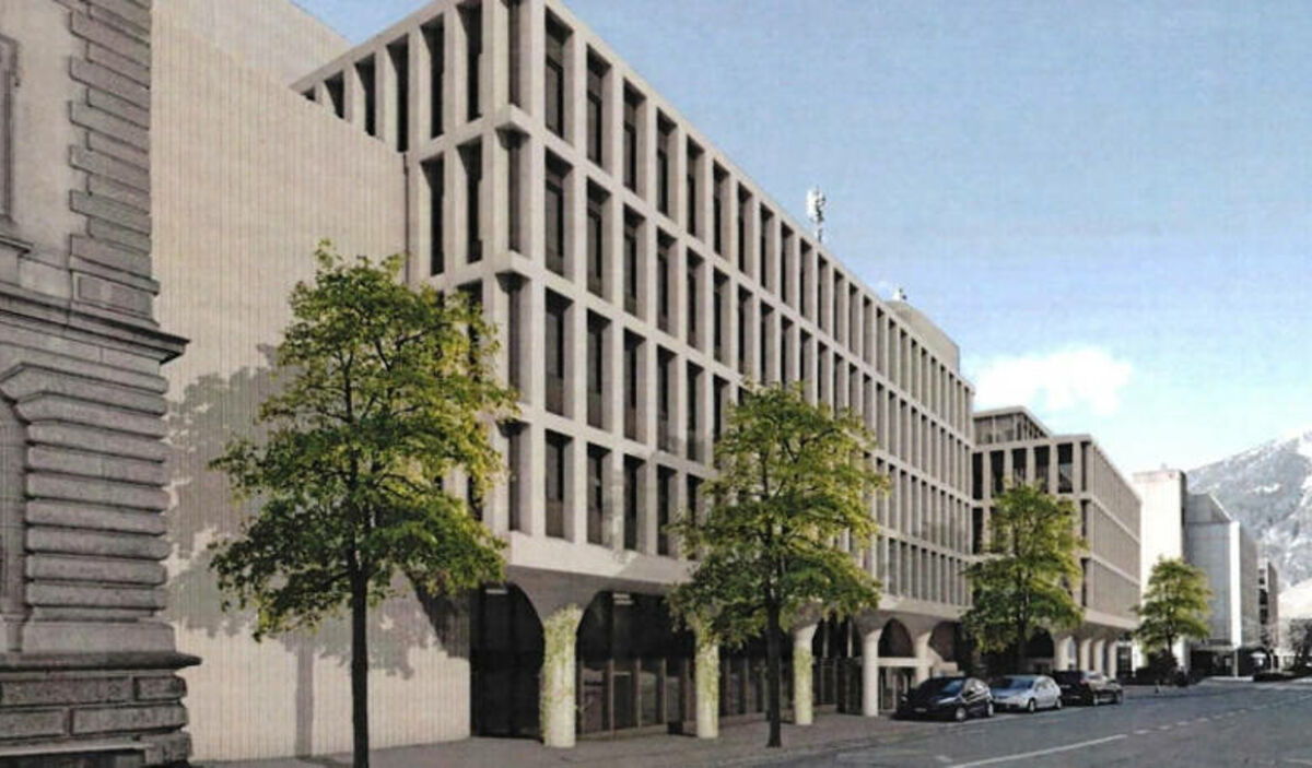 So soll es dereinst aussehen: Statt blauer Metallfassade soll künftig Beton das Erscheinungsbild prägen, wo heute die Blaue Post steht. So soll es dereinst aussehen: Statt blauer Metallfassade soll künftig Beton das Erscheinungsbild prägen, wo heute die B