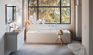 Keramik neu geformt  Gleich zwei neue Entwürfe des Luzerner Designers Peter Wirz sind in Basel am Stand von Keramik Laufen ausgestellt: Die Waschtische «Moderna» – basierend auf dem Vorgängermodell von Hans Bellmann – und das Dusch-WC...