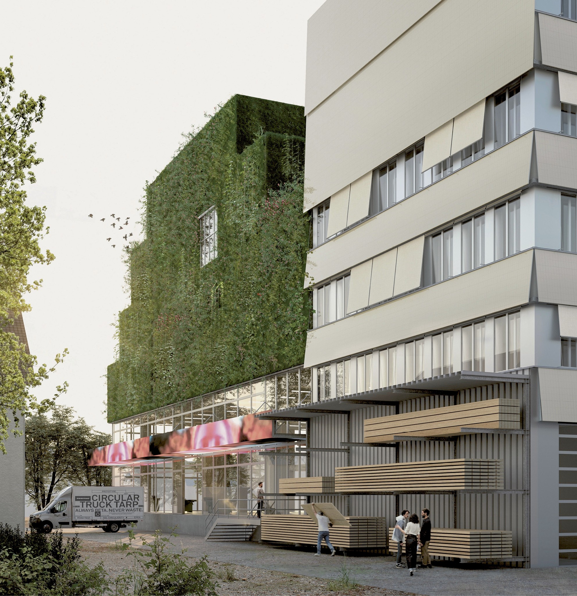 Mit ‹Campo› entsteht in Oberwinterthur der neue Sitz der Stiftung für Kunst, Kultur und Geschichte (SKKG) und der zu ihr gehörenden Immobilienfirma Terresta. Hier bekommen die rund 100 000 Objekte der SKKG-Sammlung ein neues Zuhause. Zudem sind 70 Wohnungen, Co-Working-Spaces, Gewerbeflächen, ein Gastronomieangebot sowie Werkstätten und Büros für die SKKG und die Terresta geplant. Die Wettbewerbsaufgabe von 2022 bestand darin, ein nachhaltiges Sammlungs-, Büro-, Gewerbe- und Wohnhaus direkt am Eulachpark zu entwickeln. Dabei ging es weder darum, aus Bruno Stefaninis überreicher Sammlung ein Museum zu machen, noch sollte ein Schaulager entstehen. Doch die Sammlung soll nicht einfach im Depot verschwinden und das Haus sich deshalb durch grösstmögliche Offenheit auszeichnen. Zum Siegerprojekt schrieb Ella Esslinger auf hochparterre.ch: «Der erste Preis der Arge Studio Burkhardt und Lucas Michael Architektur präsentiert sich ‹flimmrig›, bleibt verschwommen. Ein Riese absorbiert die verschiedenen Programme, breitet sich maximal aus, hält sich doch zurück. […] Das ausgewählte Projekt besticht dadurch, dass die städtebauliche Beziehung zur Umgebung trotz Massstabssprung geschickt und einfach funktioniert.»