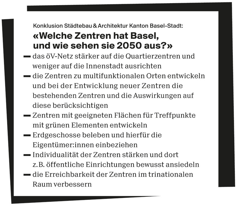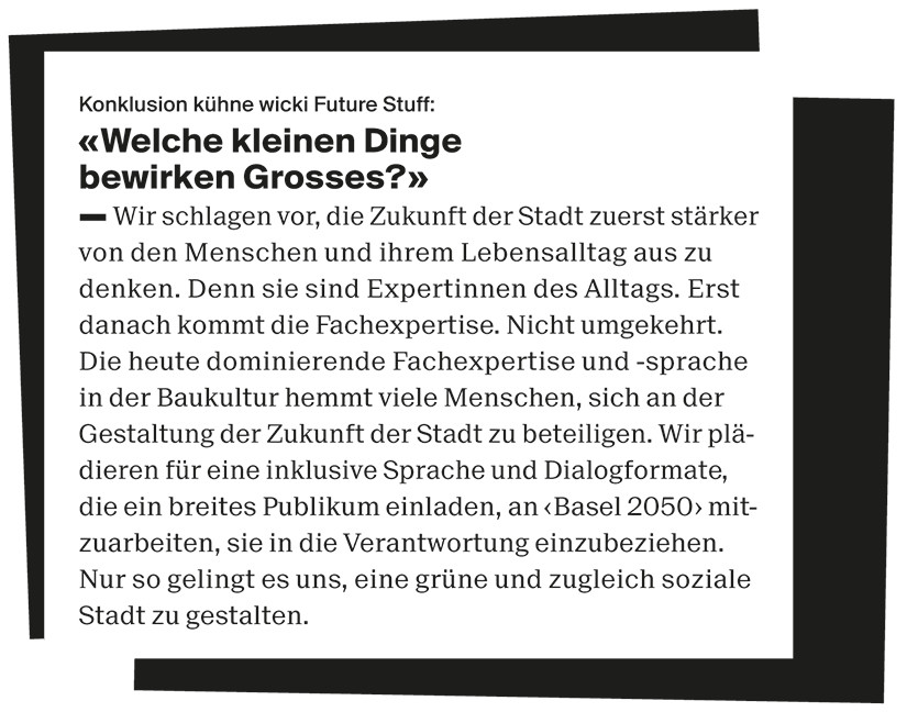 Wie soll das Basel der Zukunft aussehen? Und wie lässt sich die Entwicklung in die entsprechende Richtung lenken? Eine kleine Auswahl aus der Fülle von Ideen und Forderungen, die an den Workshops entstanden.