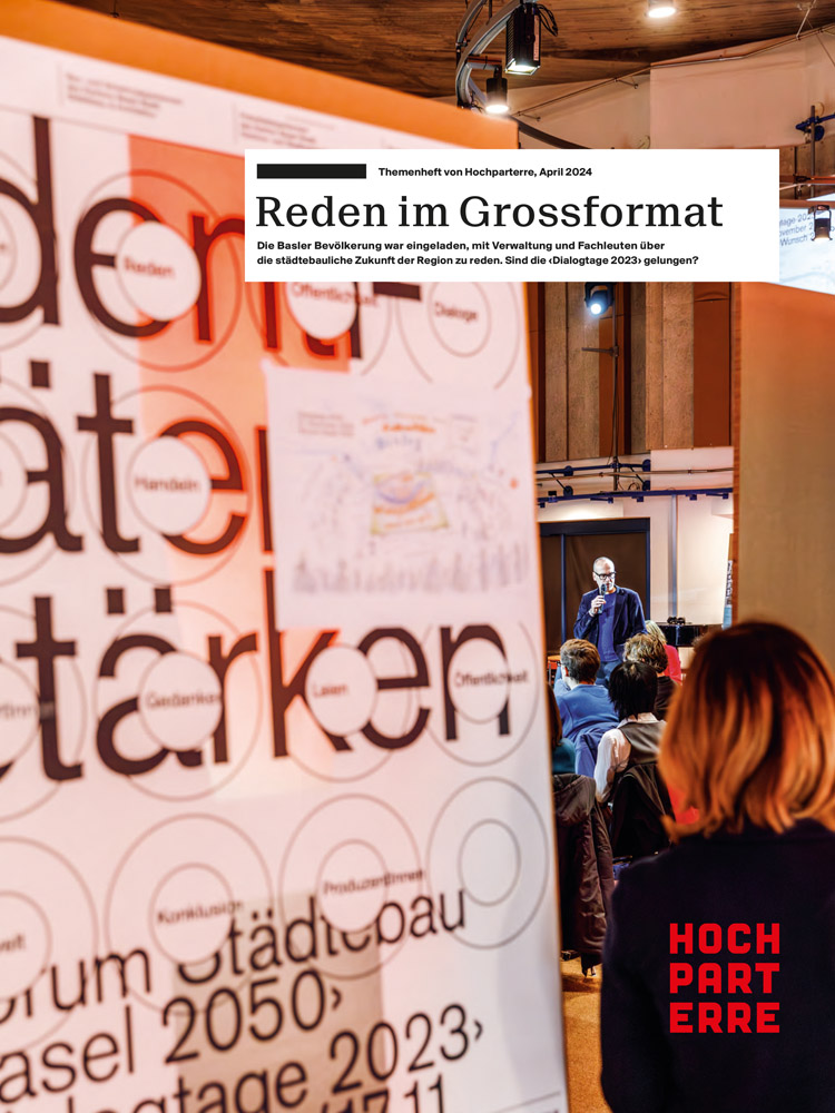 Stark gelayoutet und bereichert von den Fotografien von Derek Li Wan Po: Das Themenheft «Reden im Grossformat» enthält die auf der Website www.hochparterre.ch/baselimdialog publizierten Texte in kompakter Form.
