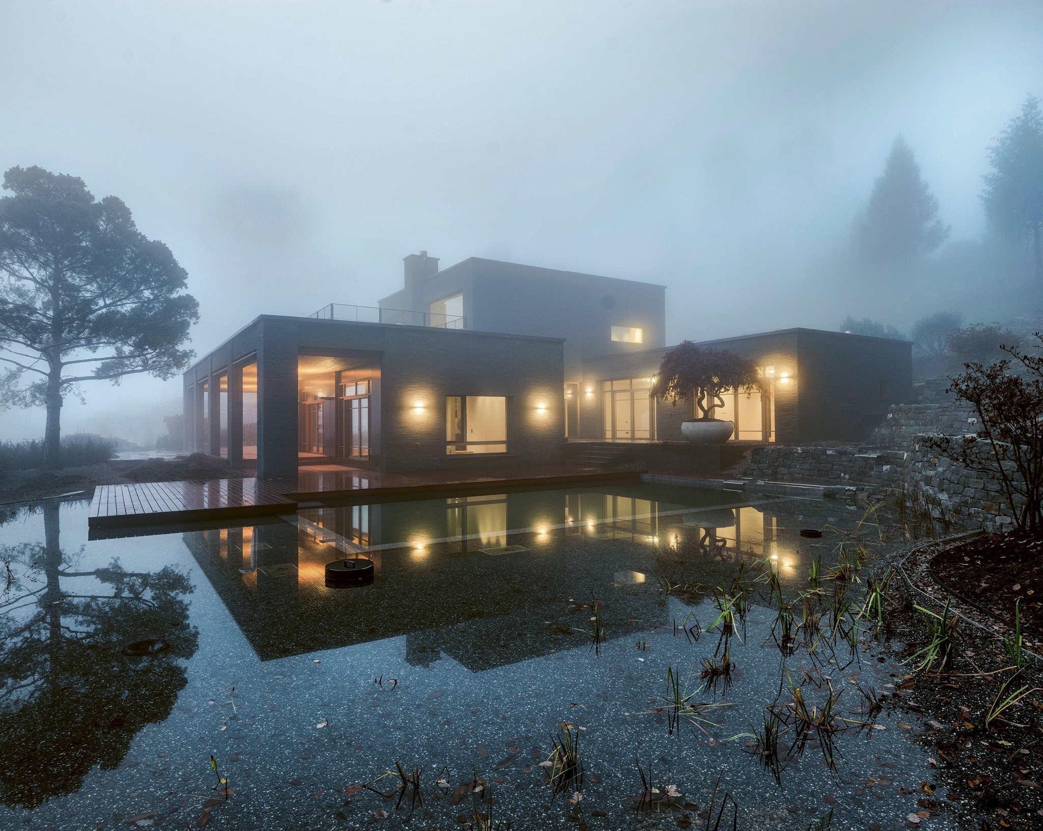 Die Schweiz – ein Land der Aussichten auf Berge und Seen, aber auch ein Land der Terrassenhäuser. Die Aussicht hat Architekturen hervorgebracht, deren einzige Qualität der unverstellte Ausblick ist. Anders die Villa Orchid am Vierwaldstättersee, entworfen vom Büro Steinmann Architekten. Der Name des Gebäudes bezieht sich auf die wilden Orchideen, die auf dem Grundstück wachsen. Das leicht verschachtelte Volumen ist sorgfältig im Hang platziert. Nur in der Mitte zweistöckig, flacht es rechts und links ab und fügt sich so in das Terrain. «Das Zusammenspiel von Architektur und Landschaft war die Grundlage unseres Entwurfs», sagt Architekt Peter Steinmann.
