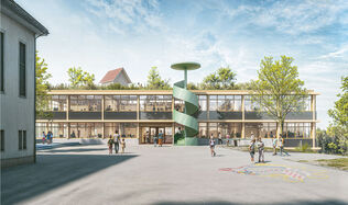 Ein guter Anfang  Safenwil? Eine kleine Gemeinde im Aargau. Wie viele andere hat sie Bedarf an mehr Schulraum. Bislimi Engel Architekten lösen eine zunächst unscheinbare Aufgabe souverän und holen den ersten Rang.