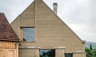 Bauwende im Dorf  Das Gässlihus in Grabs wurde aus dem Denkmalschutz entlassen. Dank einer lokalen Arbeitsgruppe und Allen + Crippa wurde der alte Strickbau versetzt und um einen Anbau aus Stampflehm erweitert.